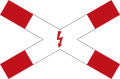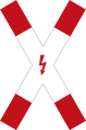 stehend mit Blitzpfeil: Dem Schienenverkehr Vorrang gewähren! |